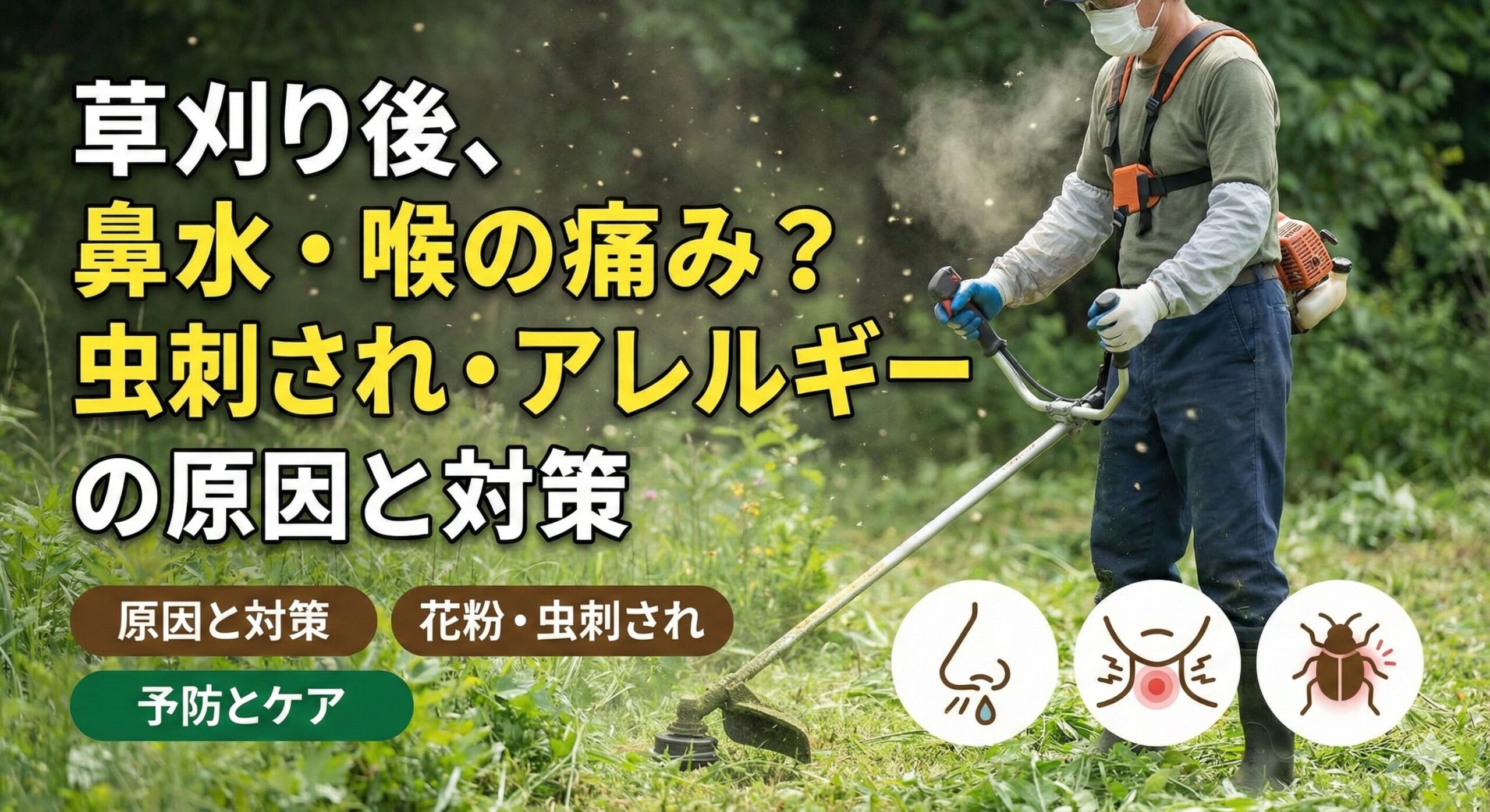 草刈り後に鼻水・喉の痛み?それは風邪じゃないかも。「草刈りアレルギー」の原因とプロの予防策