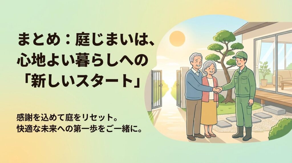庭じまいは、決して「終わり」ではありません。 長年連れ添った庭に感謝を告げ、あなたのこれからの人生を、より快適で安全なものにするための「新しいスタート」です。