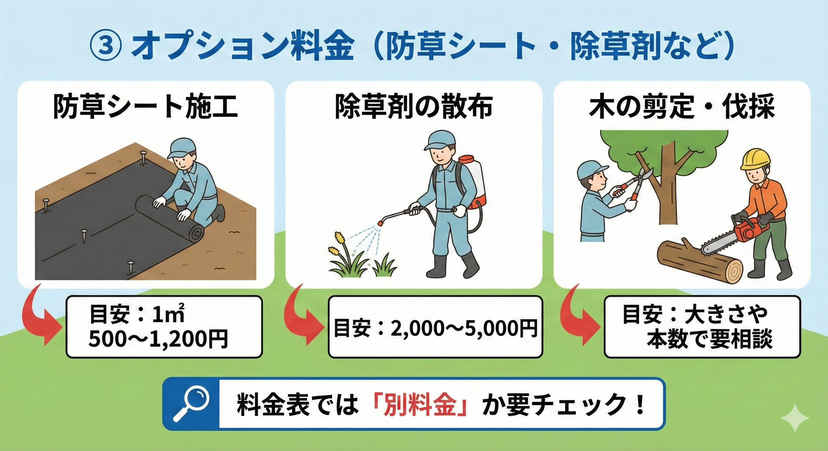 「せっかくだから草が生えてこないようにしたい」という場合は、オプション料金がかかります。