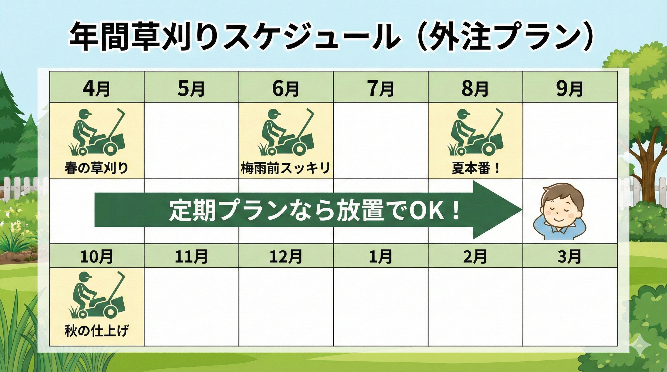草刈りはただ庭をきれいにするだけじゃなく、「安全と生活を守るための作業」なんです。だからこそ、放置せずに定期的なケアが必要なんですね。