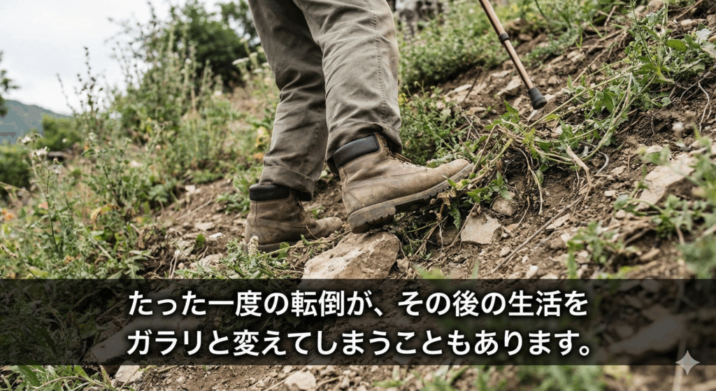 「庭の草を刈ろうとしただけなのに、転んでそのまま寝たきり生活に…」なんていう悲しいケースは、決して他人事ではないのです。