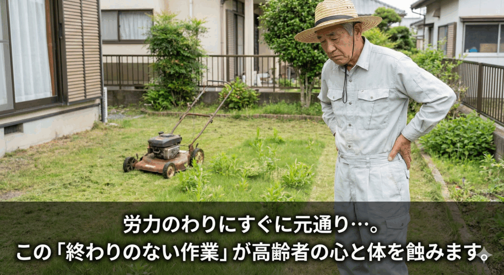草刈りは単なる庭仕事ではありません。特に高齢者にとっては、転倒や熱中症、刃物による怪我など、命に関わる事故につながりかねない「危険な重労働」なんです。