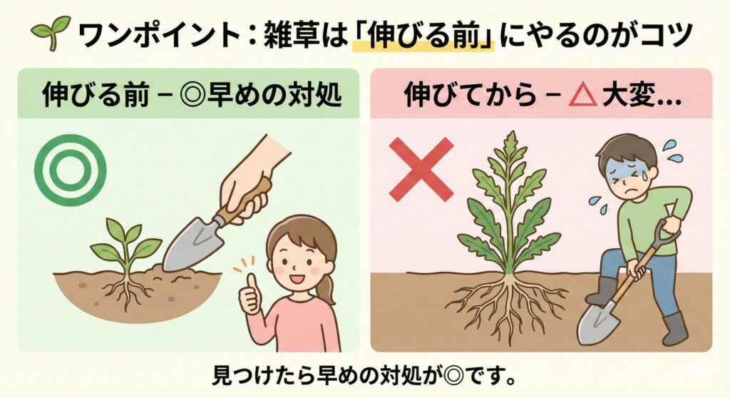 雑草は「伸びる前」にやるのがコツ。見つけたら早めの対処が◎です。