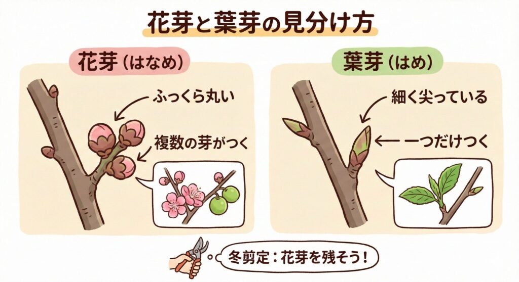 ふっくらした「花芽」と細い「葉芽」を見分けるコツ