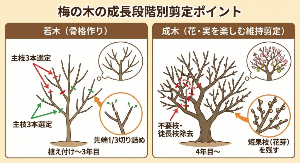樹齢別の剪定方法(若木・成木)