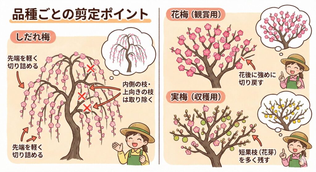 品種ごとの剪定ポイント(しだれ梅など)