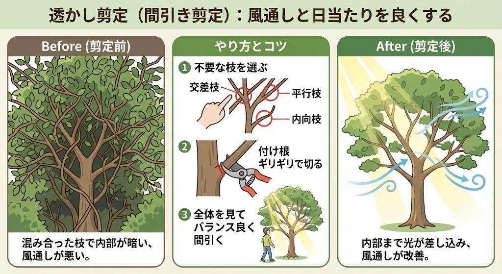 透かし剪定(間引き剪定):風通しと日当たりを良くする