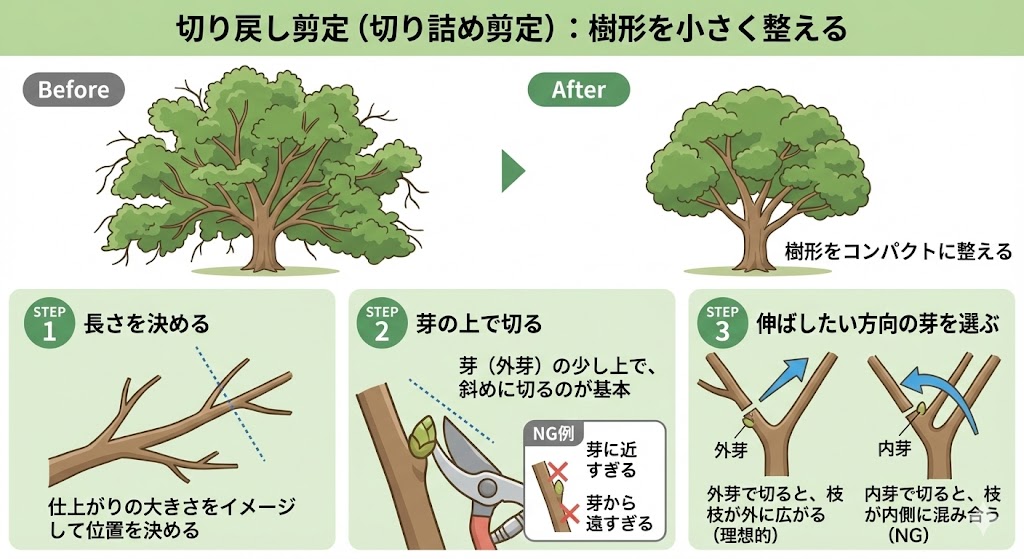 切り戻し剪定(切り詰め剪定):樹形を小さく整える