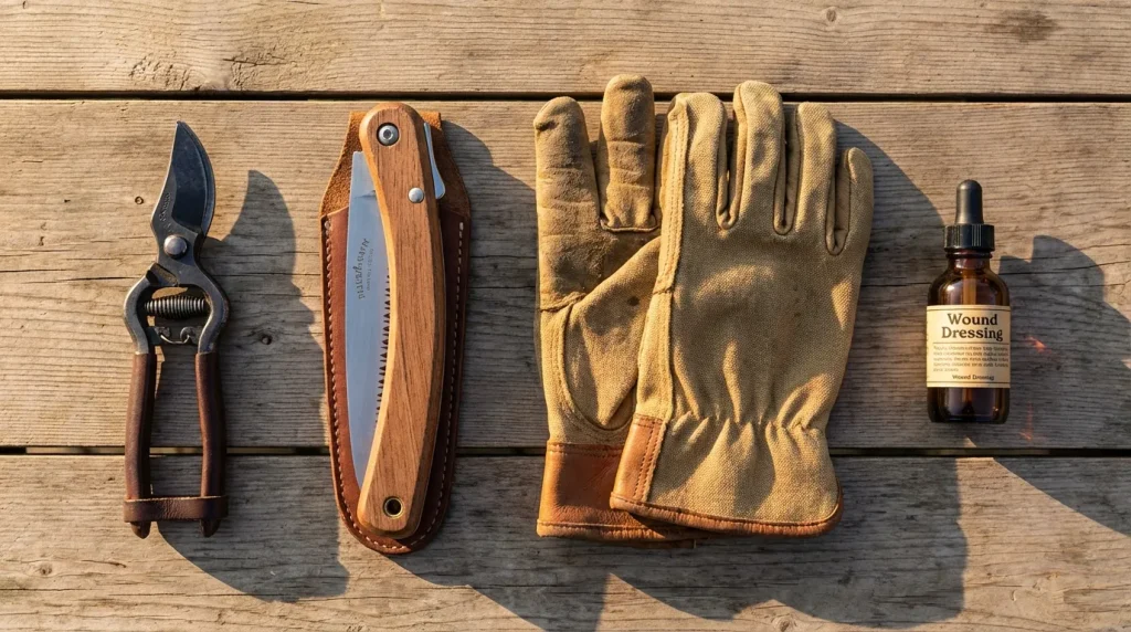 トゲや硬い枝から手を守り、滑り止め付きなら道具をしっかり握れます。